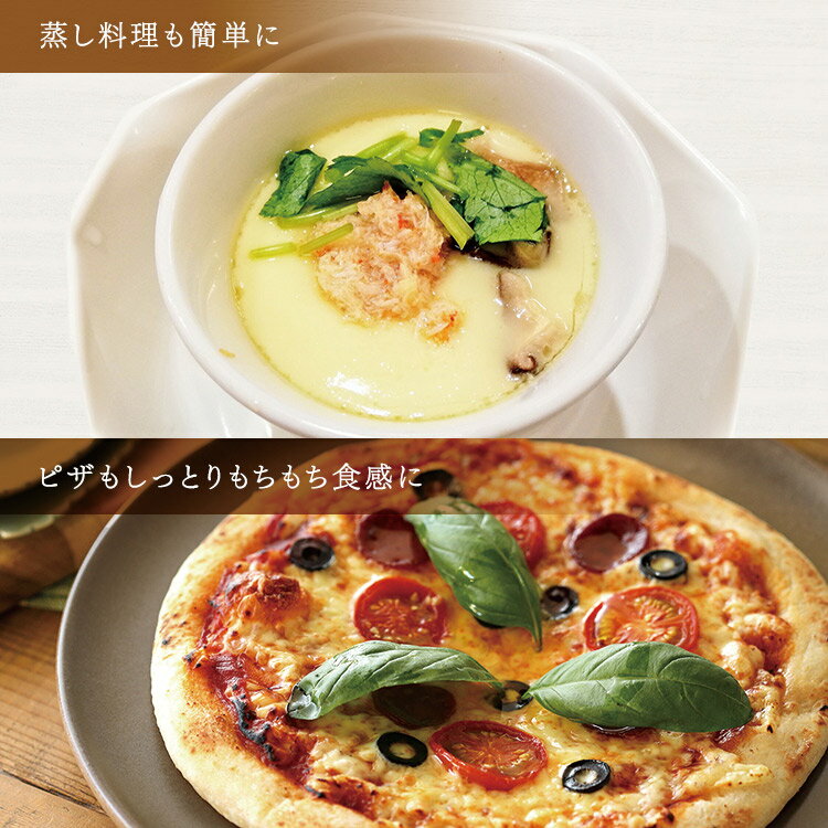【スチーム】蒸し調理やレンジ加熱と併用して使用します。