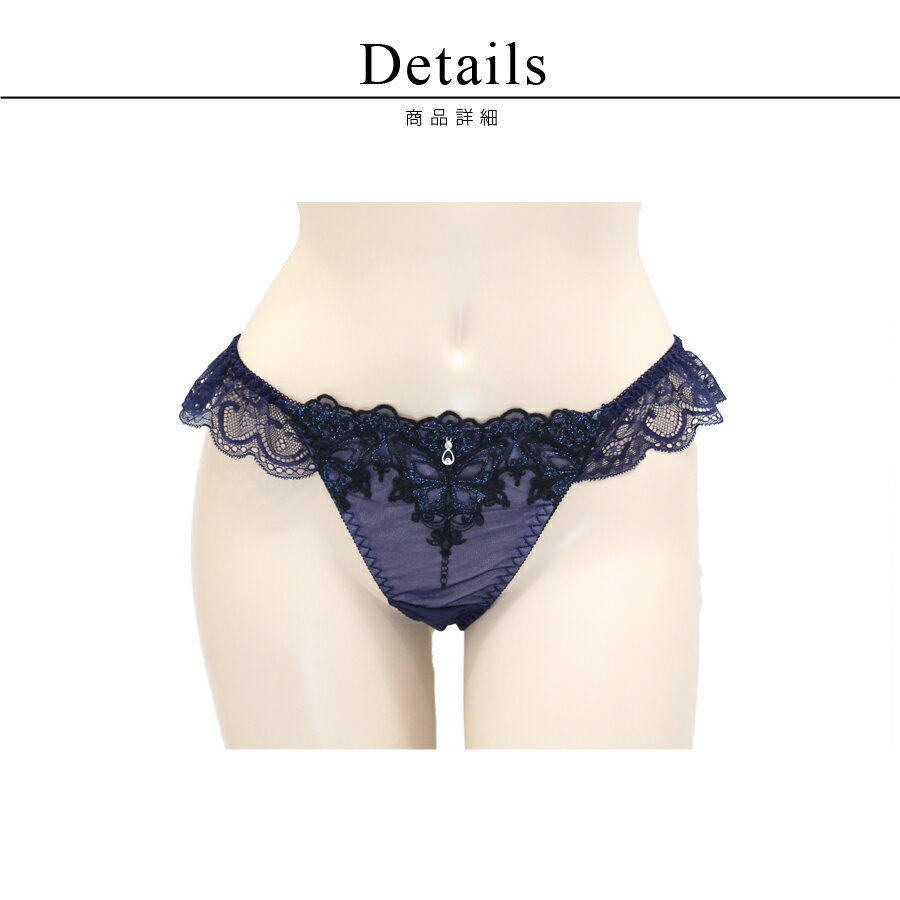 ショーツ単品 ショーツ しょーつ shorts ショーツのみ 単品 パンツショーツ セクシー Tバック Tバックショーツ シースルー サテン タンガ セクシー パンツ 下着 レディース かわいい ランジェリー レース ストレッチレース lace 刺繍 れーす バタフライ刺繍 ラメ糸 チュール 履き心地 大人 ネイビー navy 紺 紺色 シャンパン