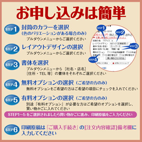 【オリジナルデザインでの印刷をご希望のお客様】 オリジナルデザインをご希望のお客様は、有料オプションから[有料オプション−オリジナルデザイン]を選択し、買い物かごに入れてください。