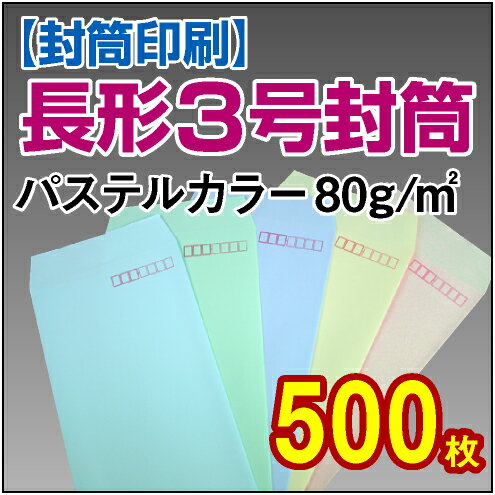 【封筒印刷】長形3号封筒 パステルカラー〈80〉 500枚【送料無料】 長3 封筒 印刷 名入れ封筒 定形封筒