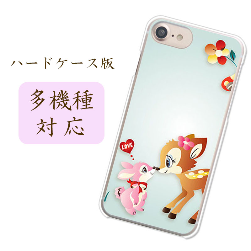 当店取扱ほぼ全機種対応スマホケース カバー【アイシテルッ】可愛い 小鹿 うさぎ バンビーナ かわいい 絵本風 ガーリー アニマル 動物 ウサギ AQUOS R2 706SH Google Pixel3 シンプルスマホ4 704SH Xperia XZ3 801SO デザインクリアハードケース 携帯ケース 側面透明
